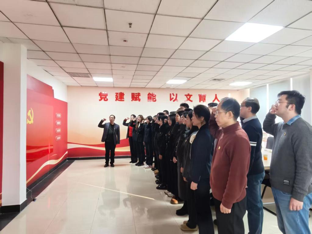 随后,全体党员面向鲜红的党旗,集体庄严宣誓。